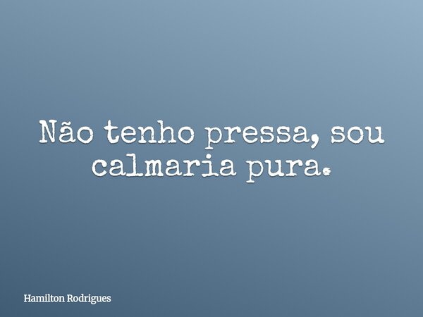 Não tenho pressa, sou calmaria pura.