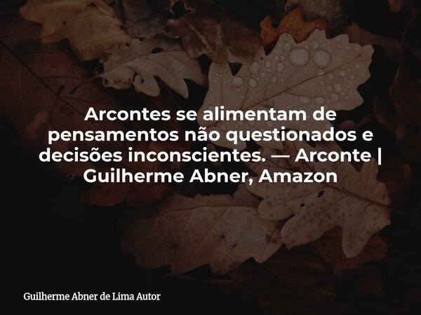 Arcontes se alimentam de pensamentos não questionados e decisões inconscientes. — Arconte | Guilherme Abner, Amazon