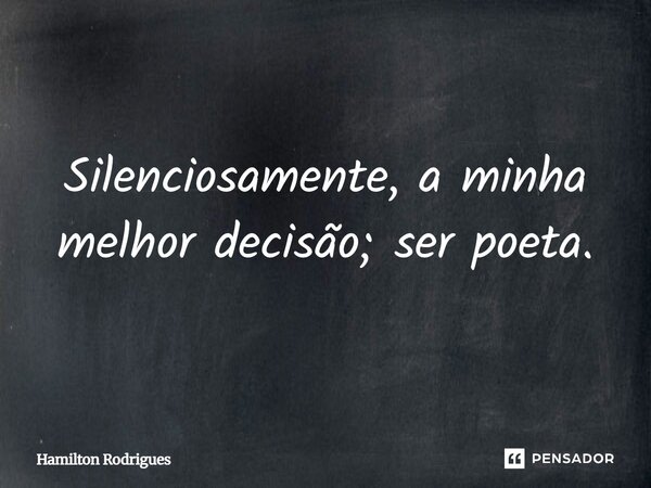 Silenciosamente, a minha melhor decisão; ser poeta.