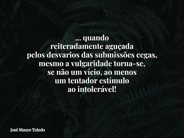 ... quando reiteradamente aguçada pelos desvarios das submissões cegas, mesmo a vulgaridade torna-se, se não um vício, ao menos um tentador estímulo ao intolerável!