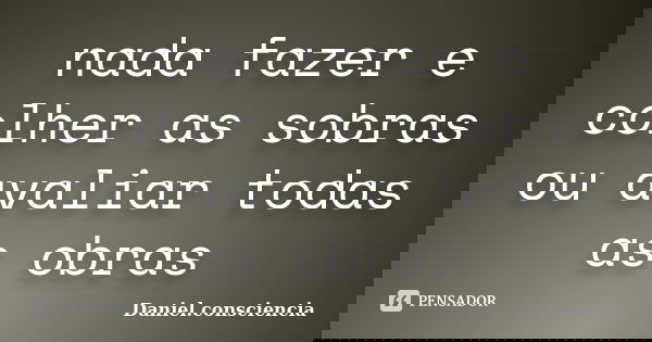 nada fazer e colher as sobras ou avaliar todas as obras