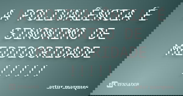 A POLIVALÊNCIA É SINONIMO DE MEDIOCRIDADE !!!!!