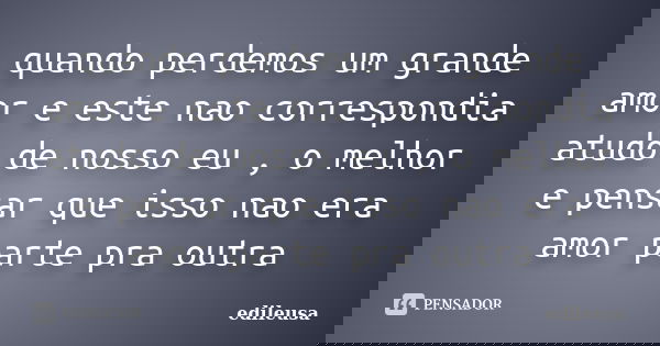 quando perdemos um grande amor e este nao correspondia atudo de nosso eu , o melhor e pensar que isso nao era amor parte pra outra