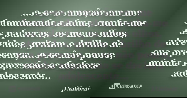 ...e-se a emoção em me dominando a alma, rouba-me as palavras, os meus olhos, atrevidos, gritam o brilho de sua presença...e-se não pouco, minha expressão se declara adolescente...