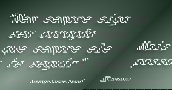 “Nem sempre siga seu coração Mais que sempre ele possa te seguir”