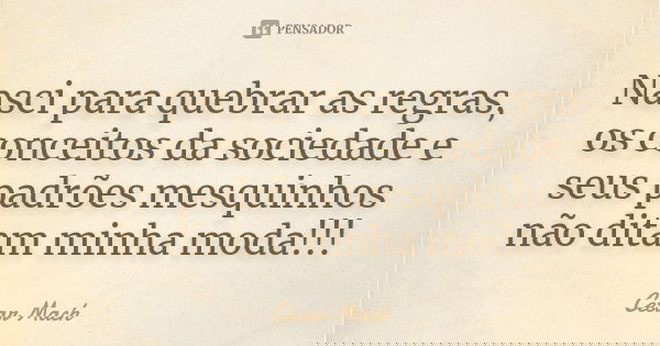 Nasci para quebrar as regras, os conceitos da sociedade e seus padrões mesquinhos não ditam minha moda!!!