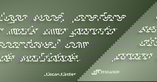Logo você, prefere ser mais uma garota discartavel com prazo de validade.