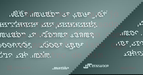 Não mudar o que já pertence ao passado, mas mudar a forma como, no presente, isso age dentro de mim.