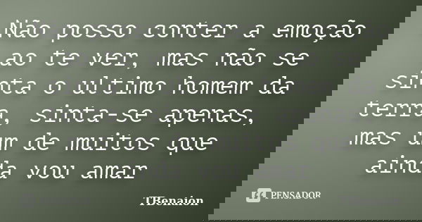 Não posso conter a emoção ao te ver, mas não se sinta o ultimo homem da terra, sinta-se apenas, mas um de muitos que ainda vou amar