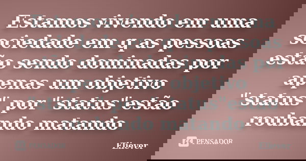 Estamos vivendo em uma sociedade em q as pessoas estão sendo dominadas por apenas um objetivo "status" por "status"estão roubando matando