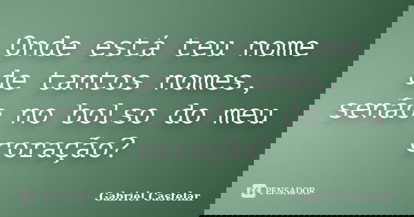 Onde está teu nome de tantos nomes, senão no bolso do meu coração?