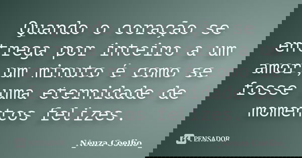 Quando o coração se entrega por inteiro a um amor,um minuto é como se fosse uma eternidade de momentos felizes.
